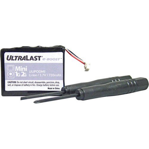 Ultralast UL-IPODMI Internal Battery Kit for iPod Mini by ULTRALAST Li-Ion rechargeable battery3.7V; 720mAhIncludes installation tools and sheetRead more Ultralast UL-IPODMI Internal Battery Kit for iPod Mini