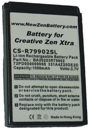 Replace your Zen Battery or Keep an Extra Battery on hand as a backup. This is a 1000 mAh, Lithium-Ion Battery that works in your Creative Labs Zen Xtra Mp3 Players . Simple, Easy and Inexpensive! You will get a New Battery, AND You also get a full ONE YEAR Money Back Guarantee exclusively from ipods99.com.Read more Battery for Creative Labs Zen Xtra